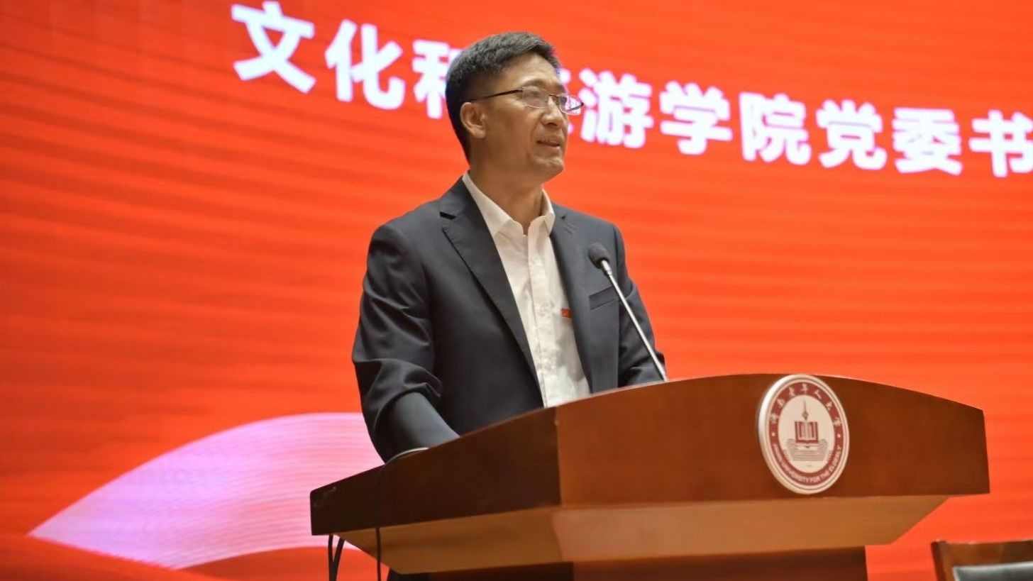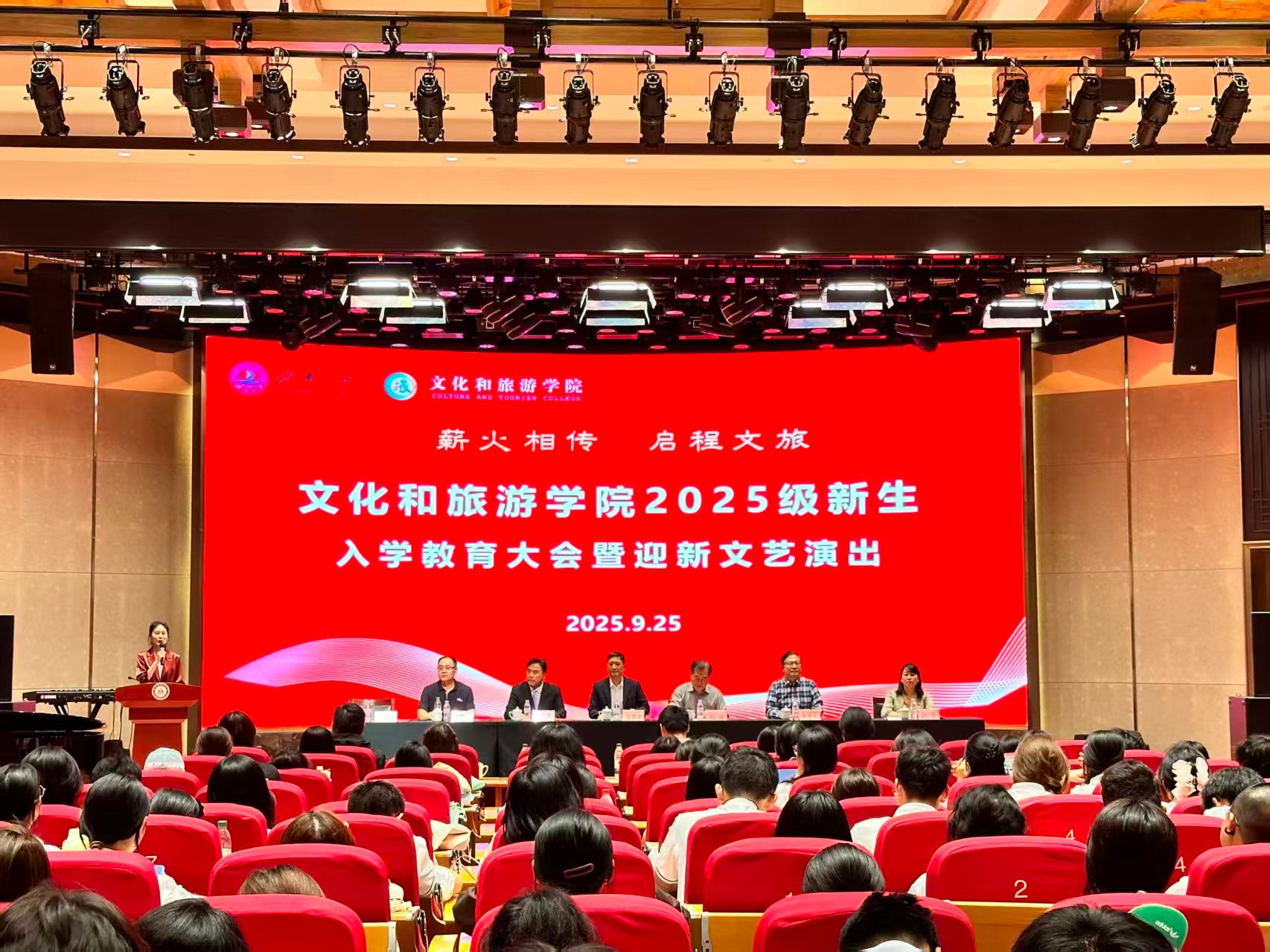 9月25日下午,太阳成集团tyc122ccvip“薪火相传 启程文旅”2025级新生入学教育大会暨迎新文艺演出在济南老年人大学报告厅隆重举行。学院全体党政领导班子成员,各系教师代表、全体辅导员、新生班主任以及2025级全体本科生和研究生共同参加了这场青春盛典。