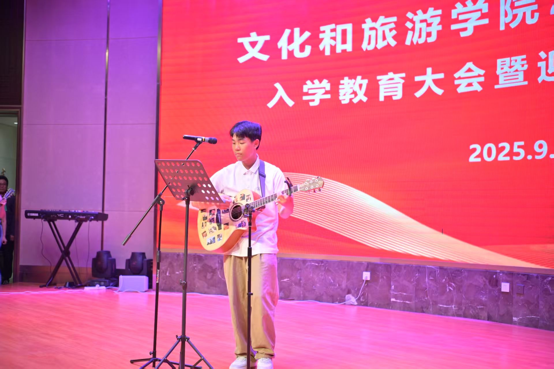 9月25日下午,太阳成集团tyc122ccvip“薪火相传 启程文旅”2025级新生入学教育大会暨迎新文艺演出在济南老年人大学报告厅隆重举行。学院全体党政领导班子成员,各系教师代表、全体辅导员、新生班主任以及2025级全体本科生和研究生共同参加了这场青春盛典。