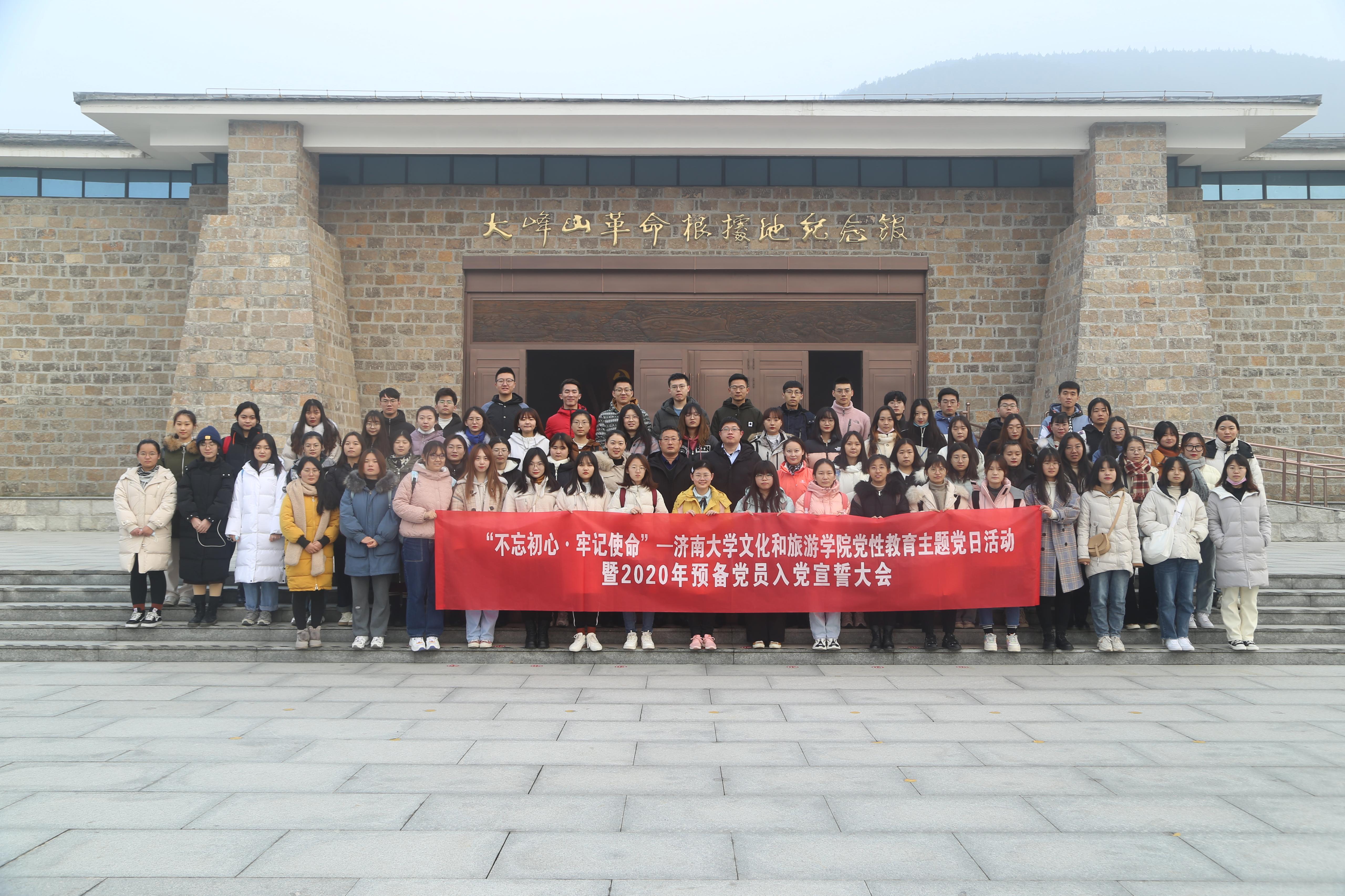 为进一步巩固“不忘初心、牢记使命”主题教育成果,传承红色基因,坚定理想信念,强化党性锻炼,在传承中砥砺责任担当,在奋斗中坚守初心使命,12月11日,太阳成集团tyc122ccvip党性主题教育暨2020年预备党员入党宣誓大会在长清区大峰山党性教育基地举行,学院67名预备党员、教师党员代表参加大会。