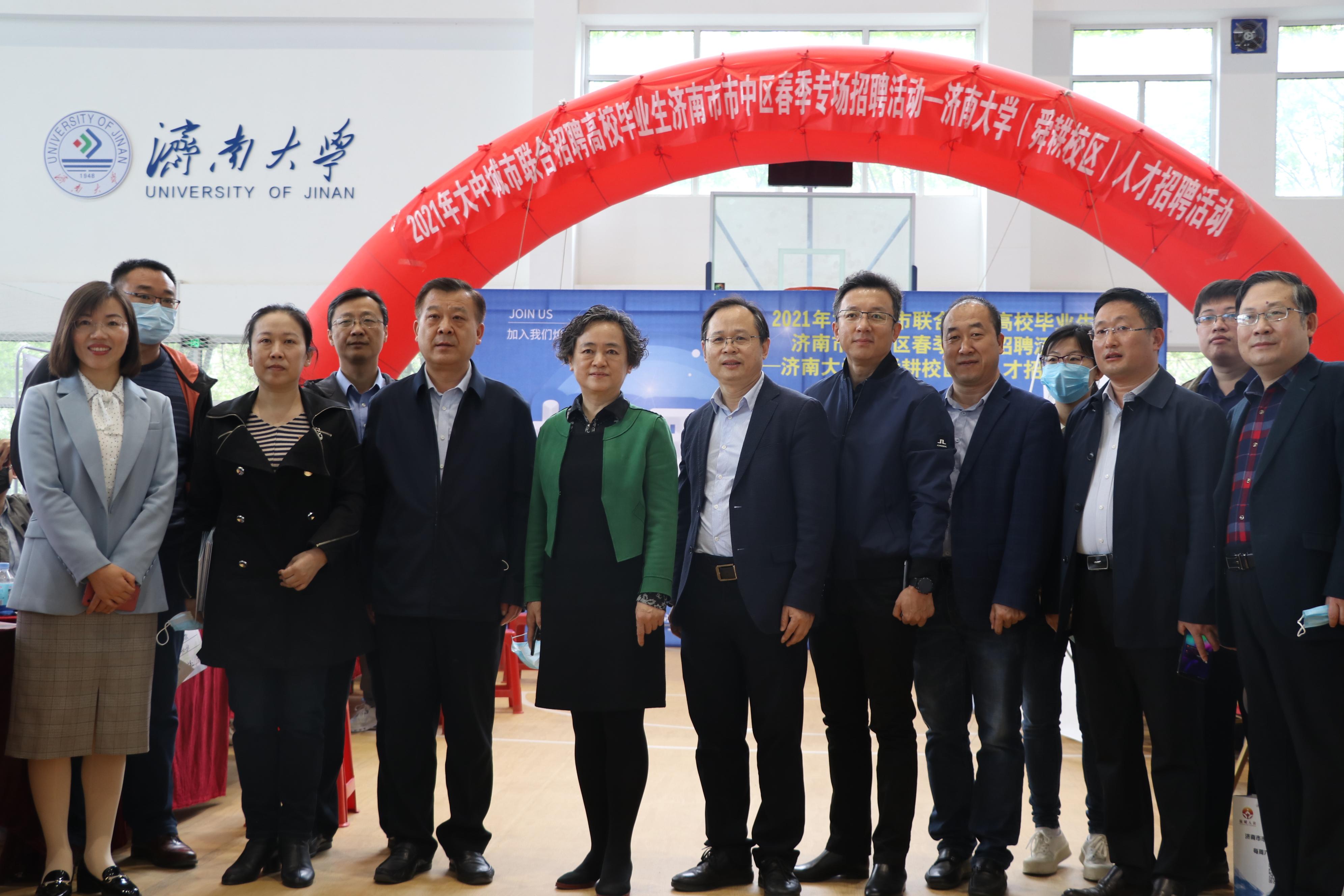 2021年4月21日,太阳成tyc122cc集团太阳成集团tyc122ccvip与济南市市中区人力资源和社会保障局在舜耕校区联合举办济南市市中区春季专场招聘会暨“青鸟计划·逐梦远方”太阳成集团tyc122ccvip2021届毕业生专场就业招聘会。学校党委副书记张硕秋、济南市市中区公共就业服务中心主任张焕利、太阳成集团tyc122ccvip院长刘建波,以及党委学生工作部(处)、校团委、文化和旅游学院相关负责人出席招聘会。