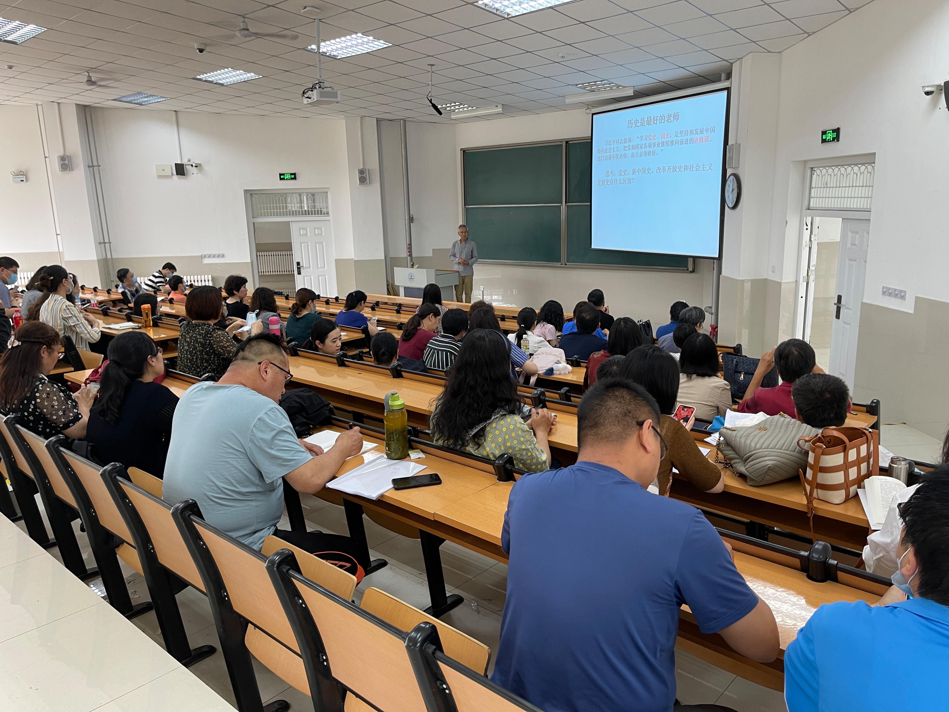为深入贯彻落实习近平总书记在中共中央关于开展党史学习教育动员大会上的重要讲话精神,进一步牢记初心使命,坚定理想信念,激发担当作为,太阳成集团tyc122ccvip根据学校党史学习教育工作的总体要求,落实“七个一”活动具体安排,于6月1日在舜耕校区第三教学楼101教室组织开展党史学习专题党课活动。党课由学院党委副书记孙成政主持,历史系主任高臻主讲,学院教工党员全员参加。