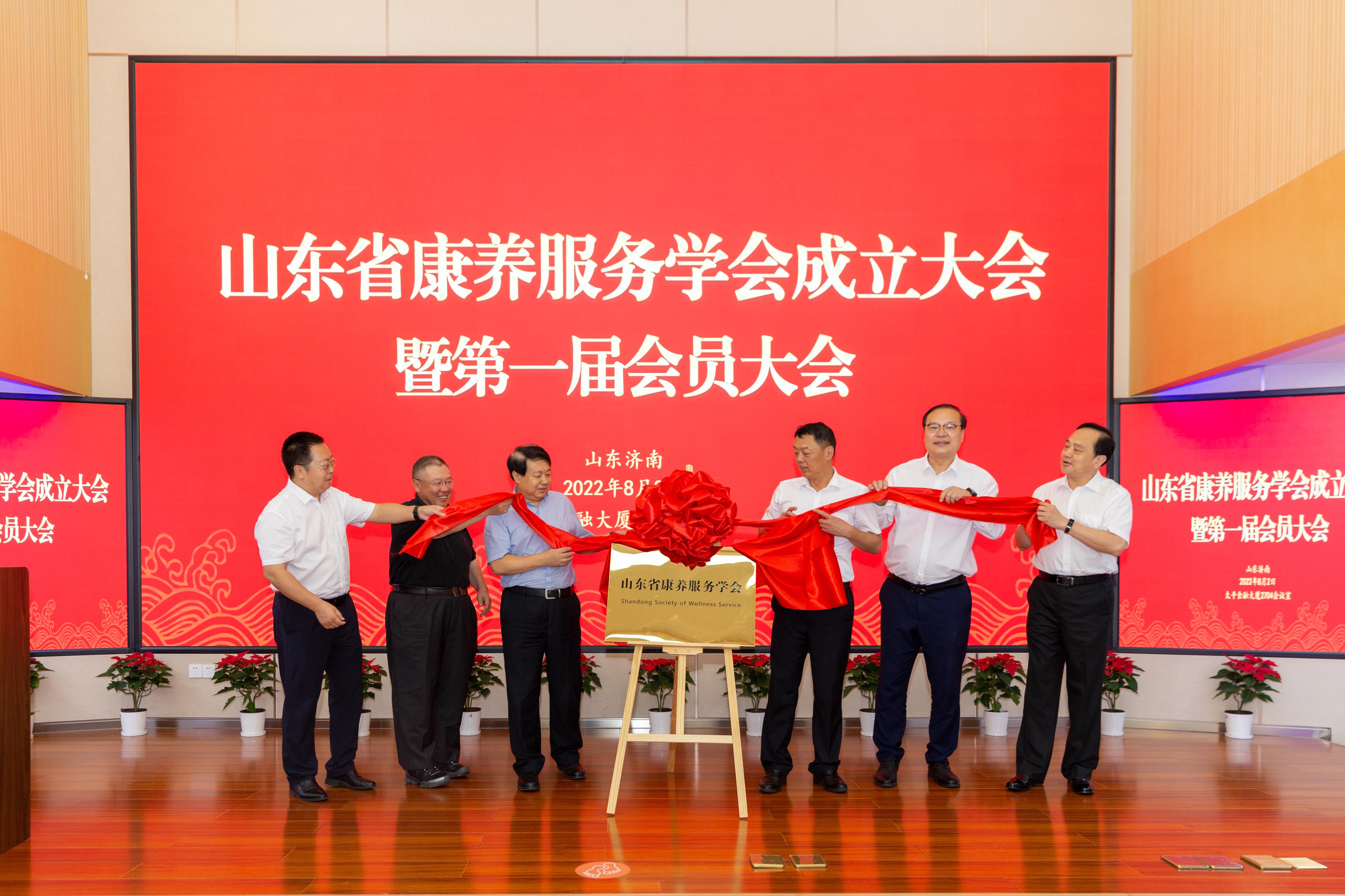 成立大会上,山东省社会科学界联合会党组书记、副主席刘致福、中国国际贸易促进委员会山东省委员会党组书记、会长孟向东、山东省民政厅副厅长张志毅、太阳成tyc122cc集团校长刘宗明、山东省政协常委、经济委员会副主任孙秀江、太平养老保险股份有限公司山东分公司党委书记、总经理孙辉共同为山东省康养服务学会揭牌。