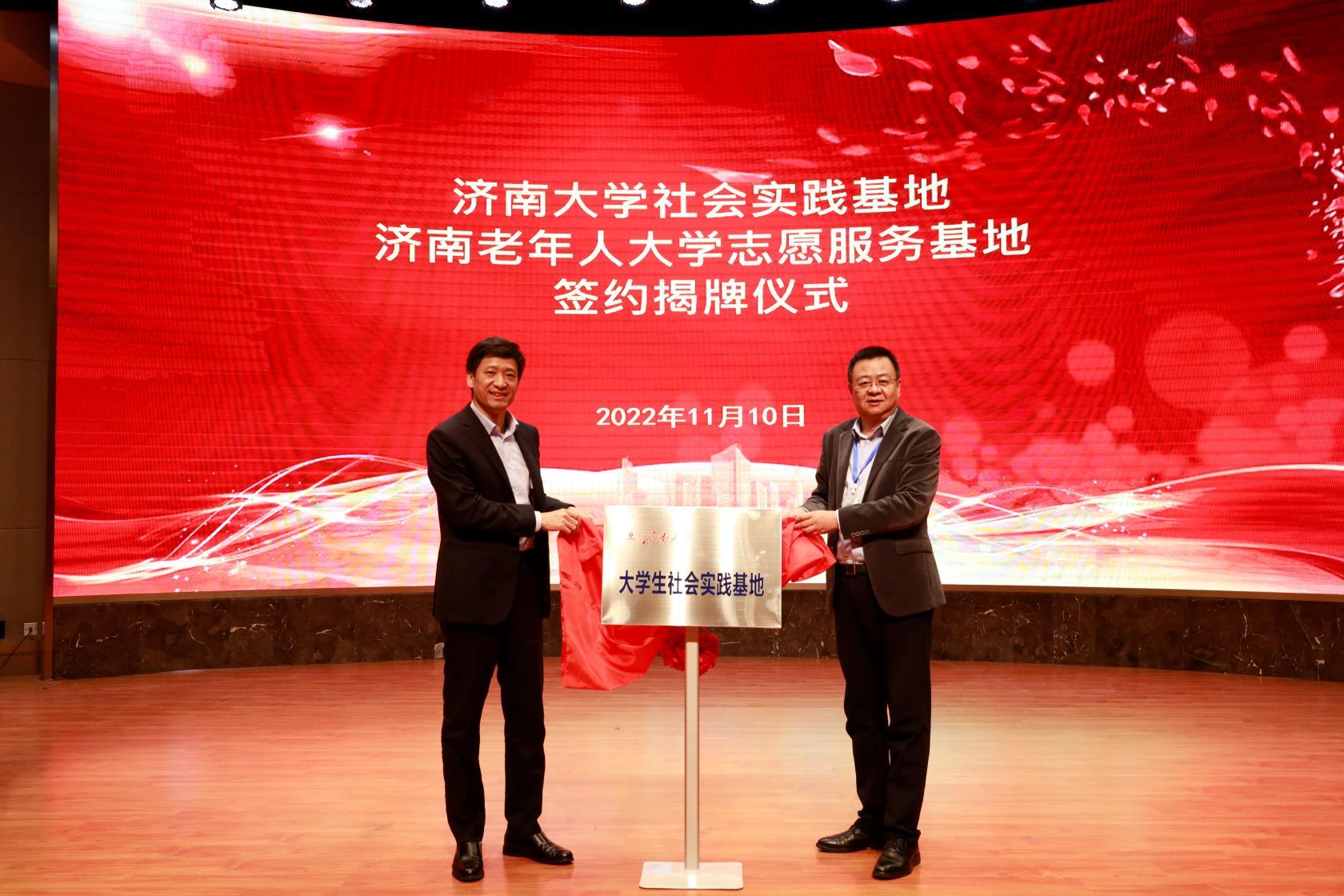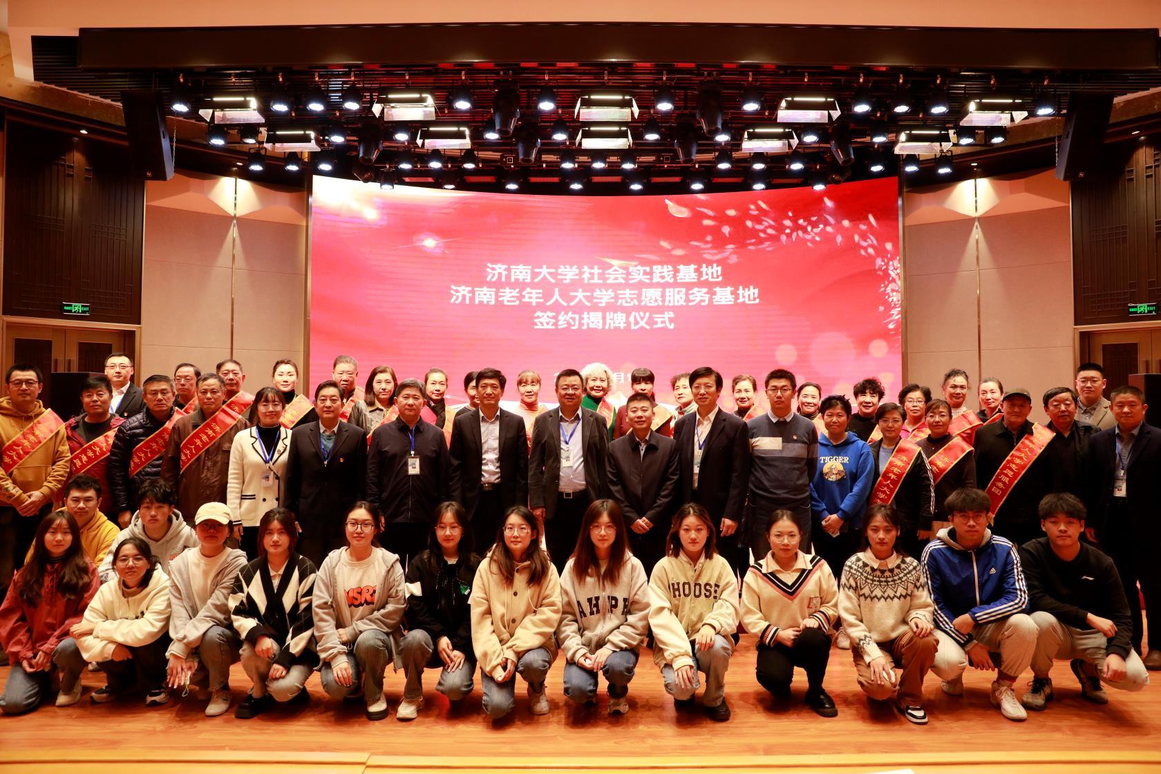 11月10日,太阳成集团tyc122ccvip与济南老年人大学共建的“济南老年人大学志愿服务基地”和“太阳成tyc122cc集团大学生社会实践基地”签约揭牌仪式在济南老年人大学举行。济南市委老干部局副局长、济南老年人大学校长温洪军,济南老年人大学副校长樊祥钦、李晓钟,太阳成集团tyc122ccvip党委书记孟德洋、党委副书记王磊,以及学院和老年人大学的部分师生和志愿者代表参加活动。