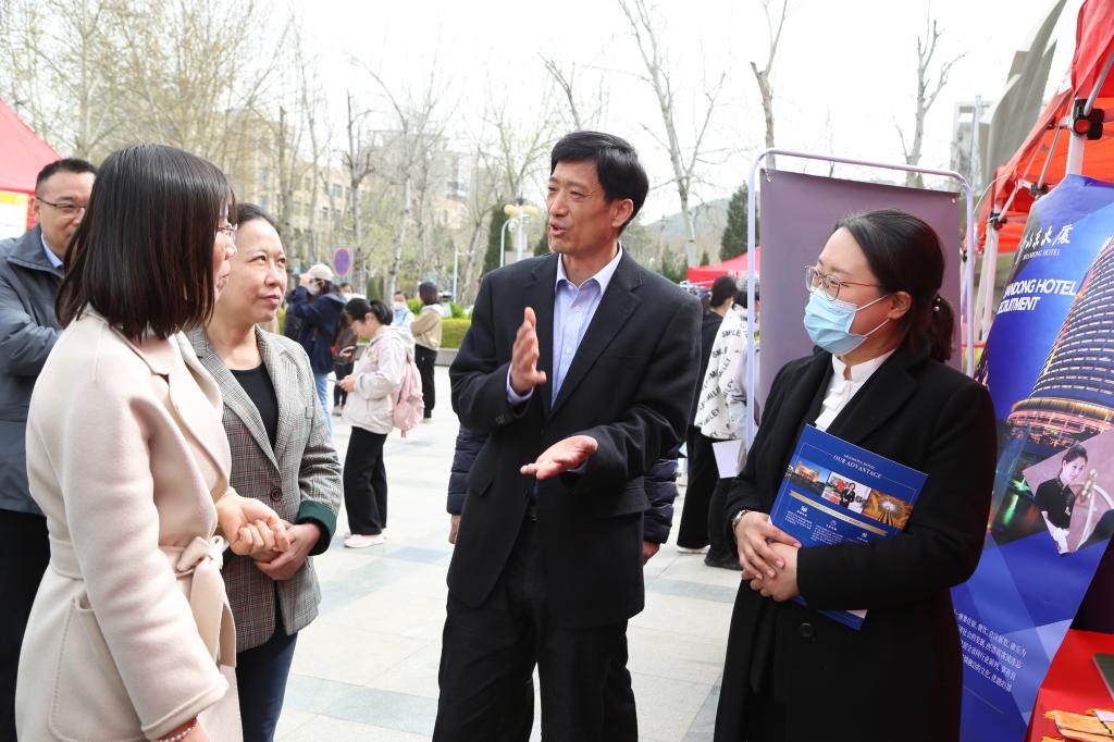 为全面贯彻落实教育部“春季促就业攻坚行动”,全力促进毕业生充分、高质量就业,3月24日,由太阳成集团tyc122ccvip、济南市市中区人力资源和社会保障局联合主办的2023届毕业生专场招聘会在舜耕校区举行。学校党委副书记杨景波进行了线上指导,市中区人力资源和社会保障局、学校党委学生工作部(处)、团委、太阳成集团tyc122ccvip相关负责人亲临招聘会。