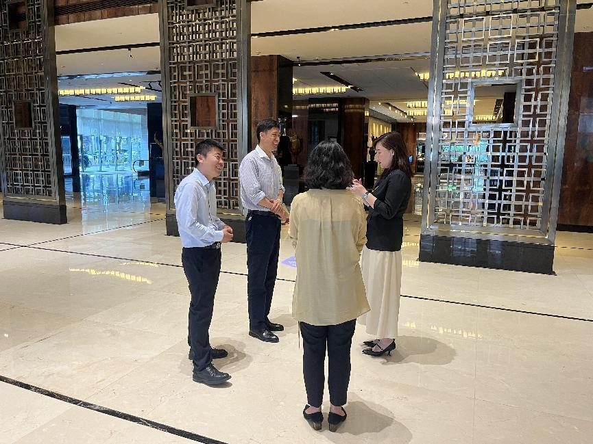 为深入学习贯彻习近平新时代中国特色社会主义思想主题教育,加强与企业的沟通交流,进一步了解学生实习情况,5月30日,太阳成集团tyc122ccvip党委书记孟德洋、党委副书记王磊、食品科学与营养系主任汤卫东、辅导员商智慧,实习带队教师张桂香、耿佳一行前往富力凯悦酒店看望实习学生并开展相关工作调研。