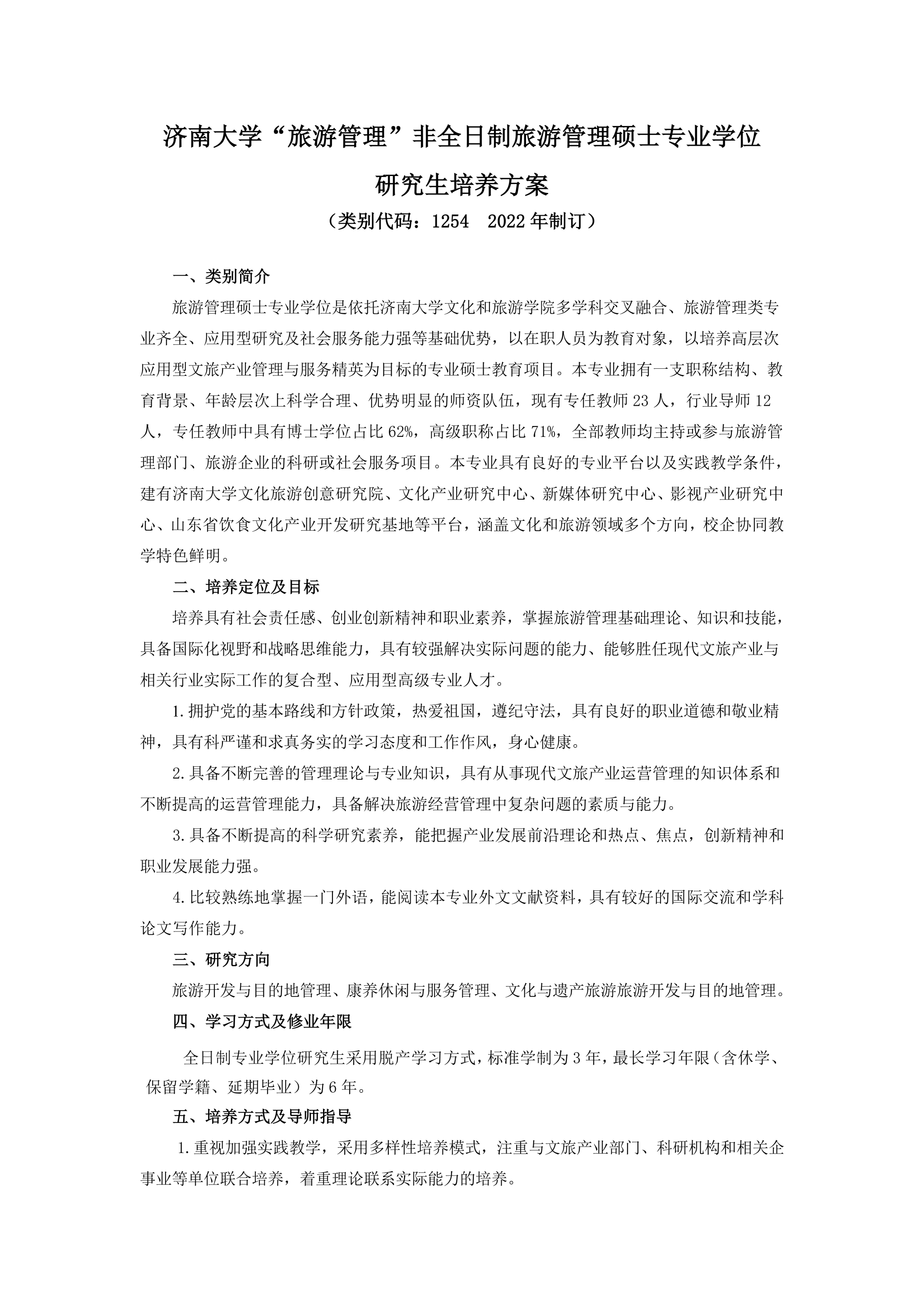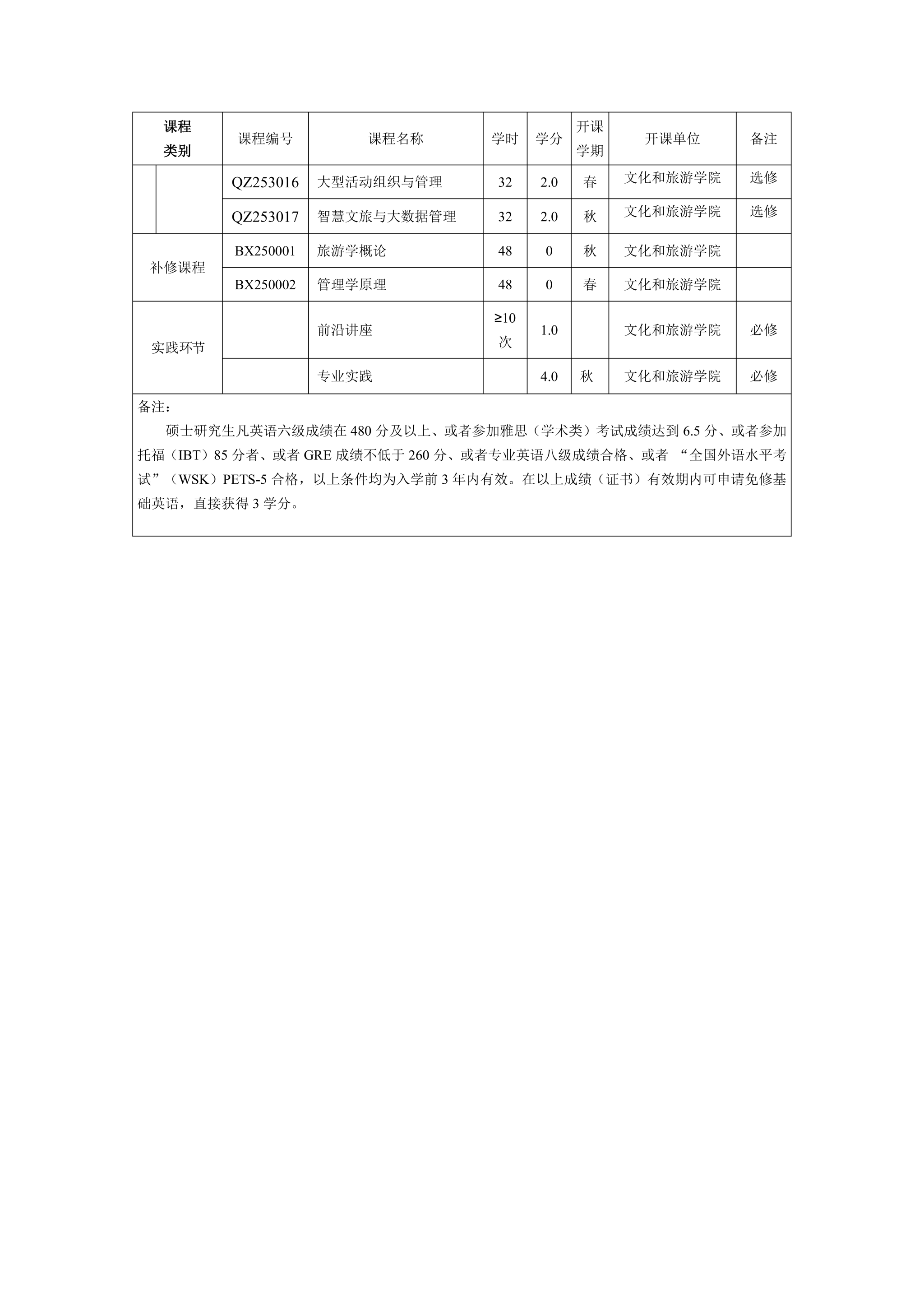 太阳成tyc122cc集团“旅游管理”旅游管理硕士专业学位 研究生培养方案