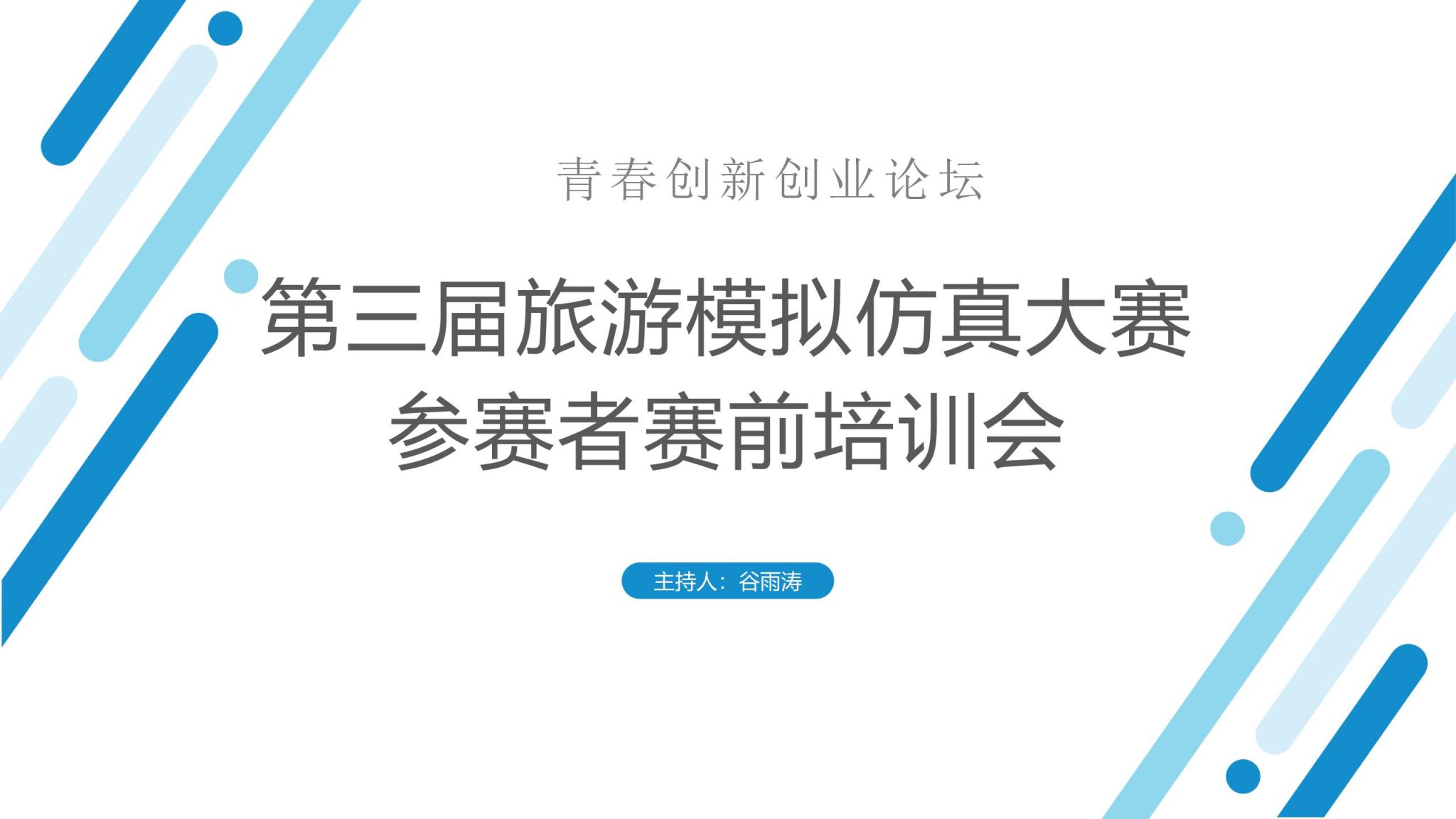 2024年5月27日,太阳成集团tyc122ccvip举办青春创新创业论坛——第三届旅游模拟仿真大赛参赛者赛前培训会。该活动于19:00在D3J201举行,主持人为创新创业部谷雨涛同学。