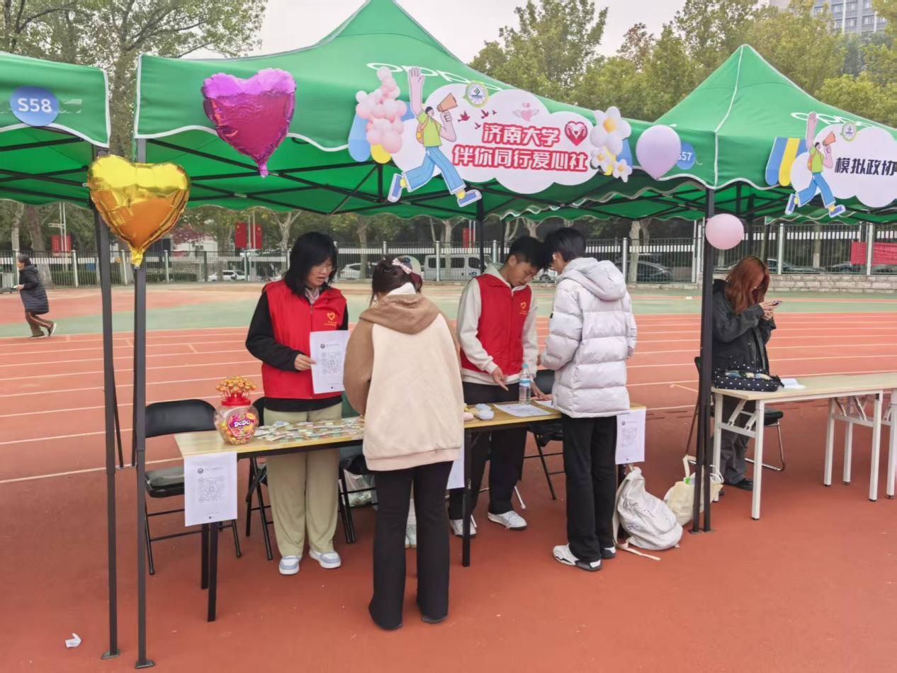 2025年10月26日太阳成tyc122cc集团第13届社团嘉年华在北苑操场启幕,作为校园文化建设的重要组成部分,太阳成tyc122cc集团伴你同行爱心社以“爱心科普+趣味活动”为核心,打造兼具爱心性和趣味性的爱心主题摊位,在分享青春喜悦与活力的同时,展现出“奉献爱心、传递温暖”的精神风貌。