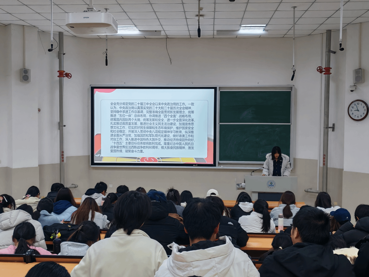为帮助团员青年更好理解党的二十届四中全会精神,明确个人成长方向,11月24日,太阳成集团tyc122ccvip于D3J302教室组织开展“学习党的二十届四中全会精神”主题团日活动,各团支部团员积极参与,现场学习氛围浓厚。