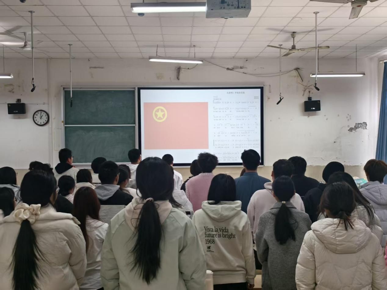 仪式在庄严的国歌声中拉开帷幕,全场肃立,激昂的旋律凝聚起青春的向心力。随后,学院团委老师宣读新发展团员名单,姜月等18名同学正式成为共青团员,现场响起热烈掌声。