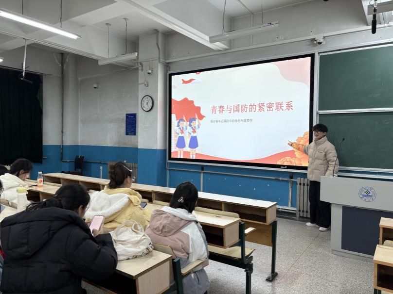 宣讲会伊始,何政轩以“青春与国防的紧密联系”为切入点,紧扣当前国际形势与国家安全需求,系统阐述了当代青年在国防建设中的角色定位与时代责任,明确青年是国防力量的后备军、科技强军的生力军、全民国防的宣传队,帮助同学们深刻理解了青年在国防建设中的重要性。
