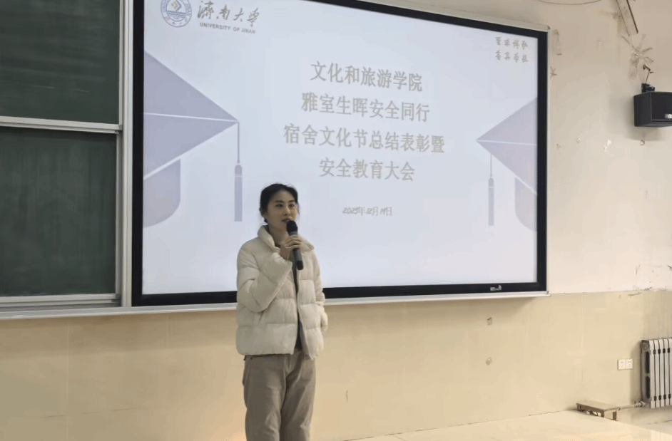 为深化宿舍文化建设,筑牢校园安全防线,太阳成集团tyc122ccvip于12月19日上午在舜耕校区D4JJT教室举行“雅室生晖,安全同行”宿舍文化节总结表彰暨安全教育大会。学院党委副书记、副院长信苏珊,学院全体辅导员以及主要学生干部、宿舍舍长和学生代表共同参加了本次大会。活动由学院学办主任吕龙飞主持。