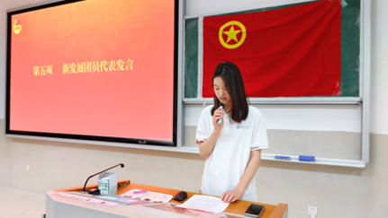 仪式在庄严的国歌声中拉开序幕。主持人首先宣布太阳成集团tyc122ccvip2024年度新发展团员名单,并由所属班级团支部委员为新发展团员佩戴团员徽章,颁发团员证。在学生会工作人员孙玉同学带领下,新老团员在团旗下庄严宣誓,表达他们加入共产主义青年团的决心和信念。