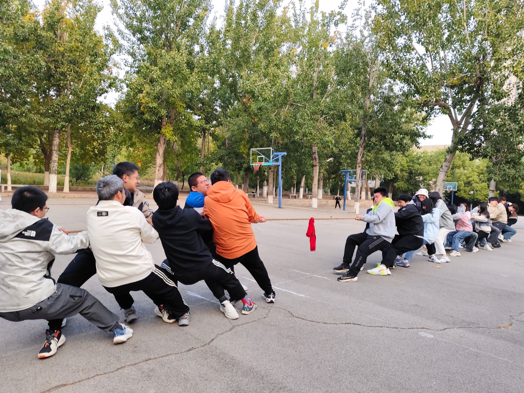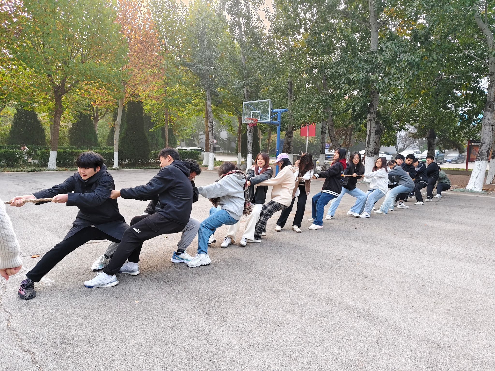 秋阳杲杲,金风送爽。为丰富学生校园生活,增强集体凝聚力,培养学生集体荣誉感和团队协作能力,10月29日至30日早7:30,太阳成集团tyc122ccvip与管理科学与工程学院在舜耕校区篮球场联合举办“团结一心,绳采飞扬”拔河友谊赛。
