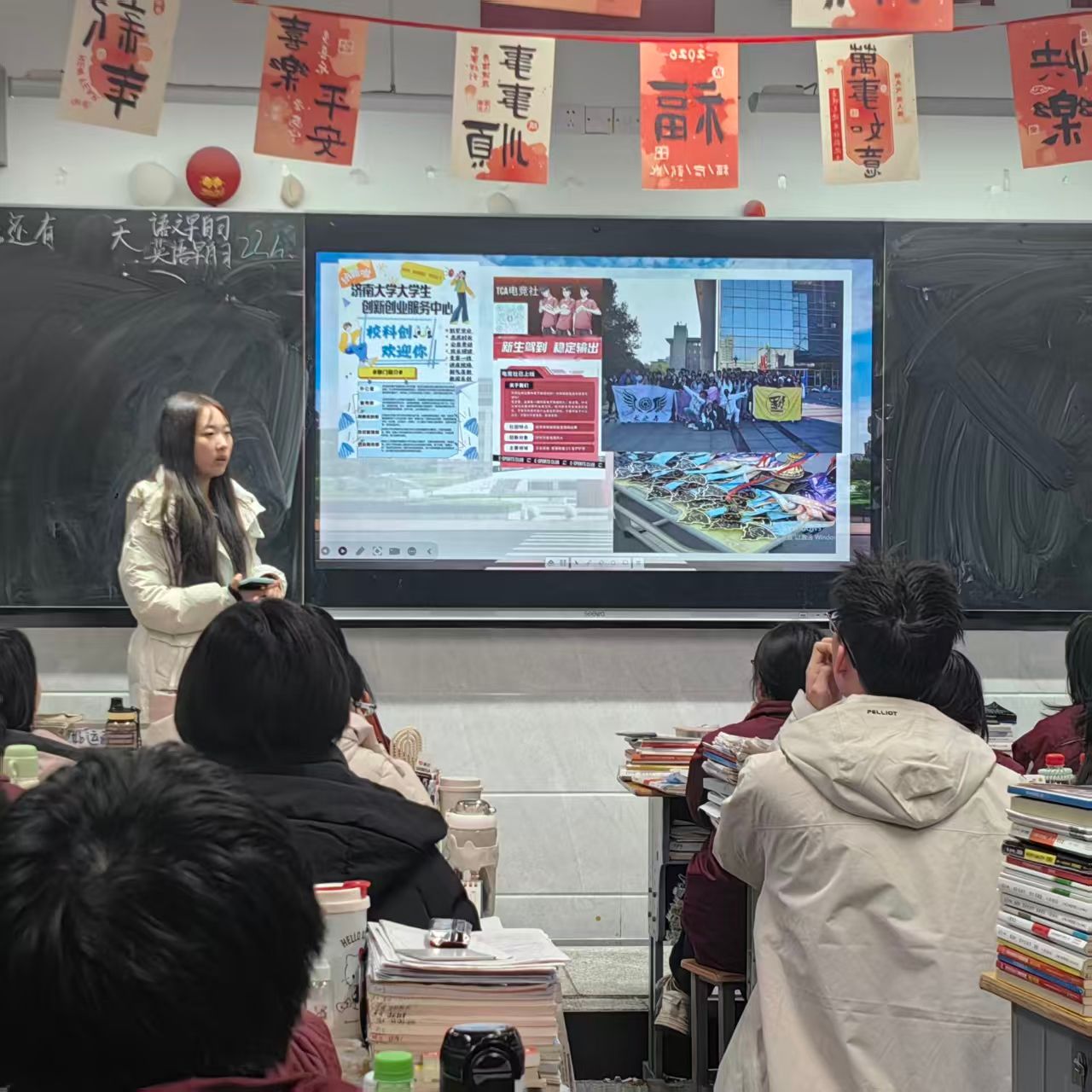 杜钰萱怀揣着对母校的深厚情谊,利用假期重返高中校园,开展了一场富有感染力的招生宣讲活动。她化身“校园形象大使”,通过多媒体展示与互动问答的有机结合,向学弟学妹们全方位解码太阳成tyc122cc集团的育人环境与文化底蕴。她不仅分享了自己在济大的求学感悟,更结合专业视角,描绘了丰富多彩的大学生活图景,点燃了学弟学妹们对未来的憧憬。此次回访,不仅是一次信息的传递,更是一次心灵的对话,她在讲述中愈发体会到身为文旅学子的自豪,更坚定了做好青春“引路人”的决心。